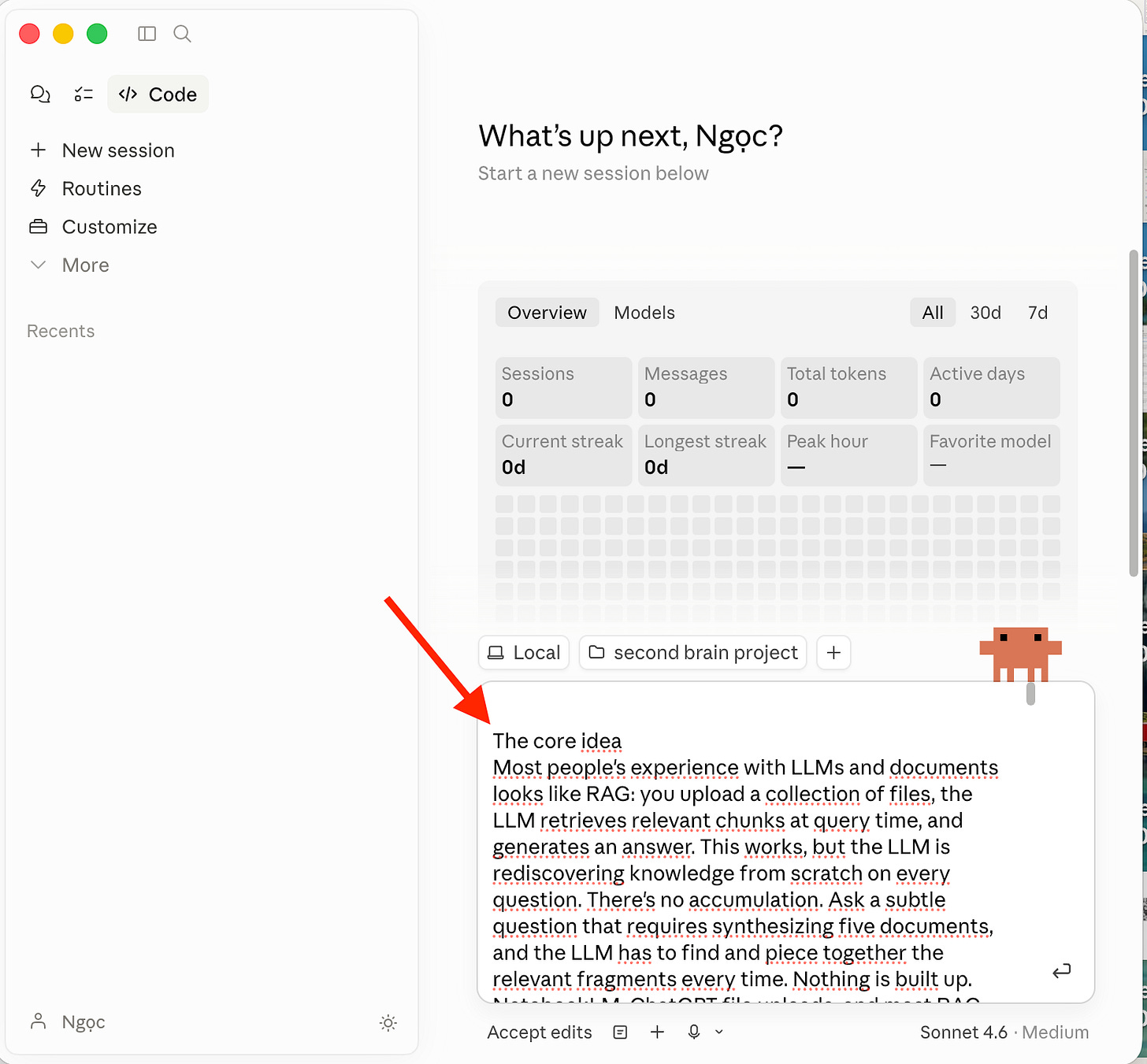 Bước 3: Dán System Prompt của Karpathy, đây là bước “ma thuật”