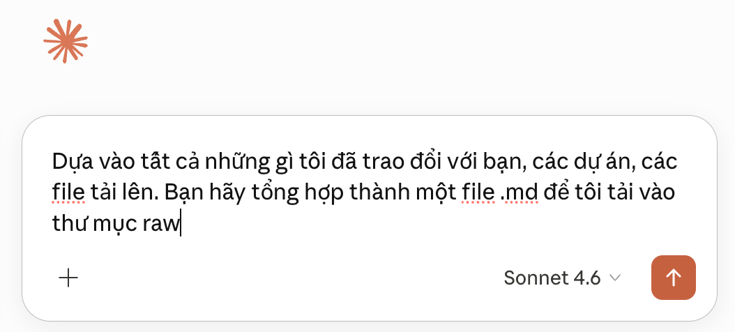 Sau khi có file trong `raw/`, quay lại Claude và gõ: