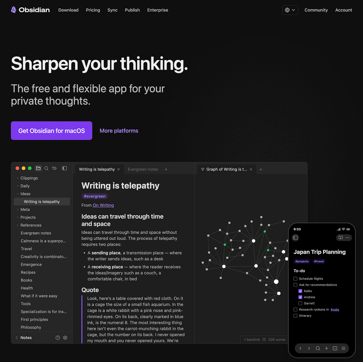 Ngoài ra, bạn có thể tải ứng dụng Obsidian trên điện thoại, sau đó đồng bộ với app trên máy tính. Từ đó bất kể khi nào lúc bạn đi bộ, ngồi uống cafe, đi du lịch nhìn thấy cái gì đó ý nghĩa… bạn có thể đưa ngay dữ liệu này vào “raw/”
