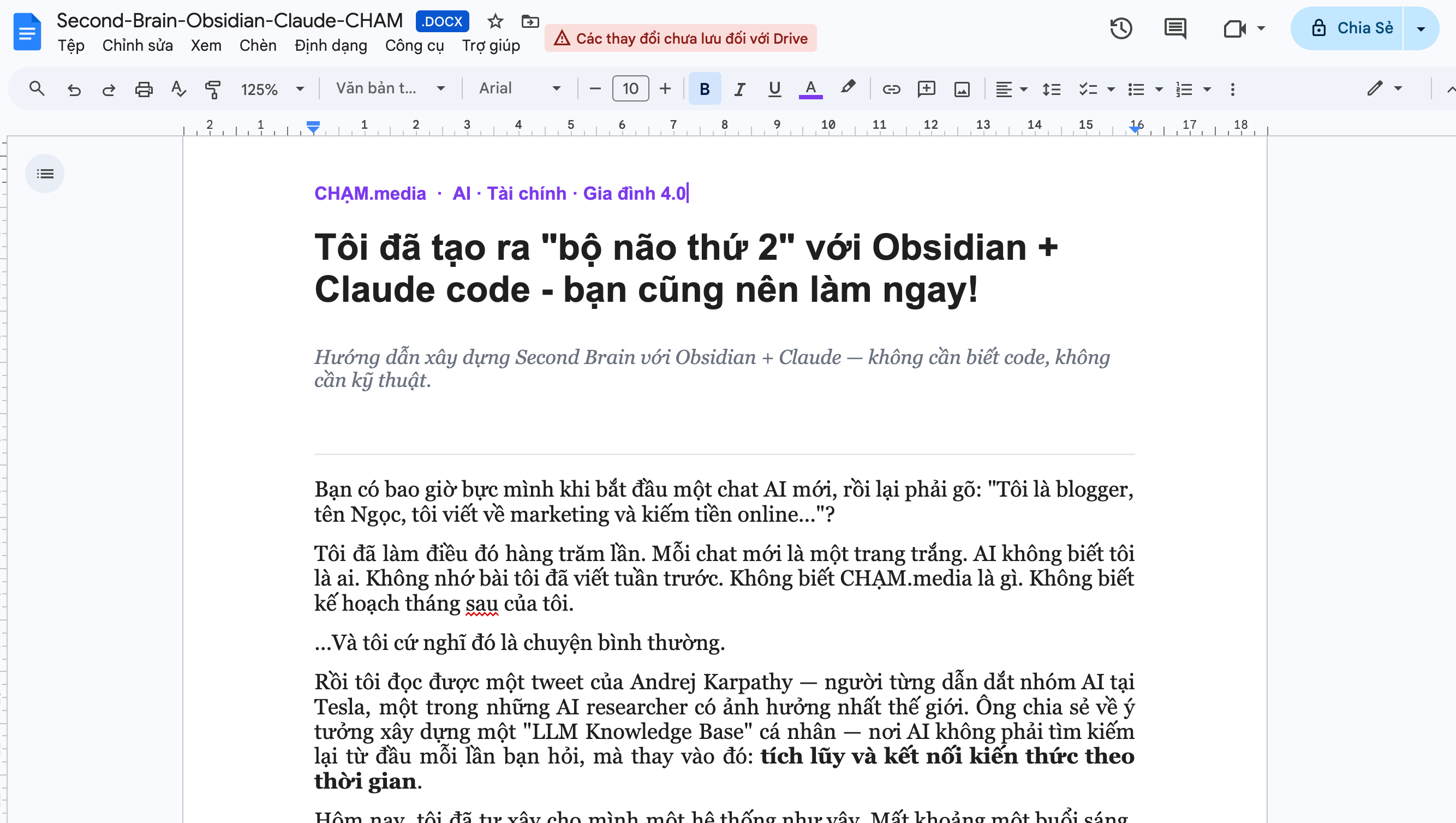 (Sự thật bài viết này cũng được viết bởi bộ não thứ 2, tôi chỉ cần nói “hãy dựa vào quá trình tôi & bạn đã thiết lập Ngoc’s second brain, sau đó viết một bài cho CHAM.media hướng dẫn thật chi tiết theo phong cách step-by-step”)