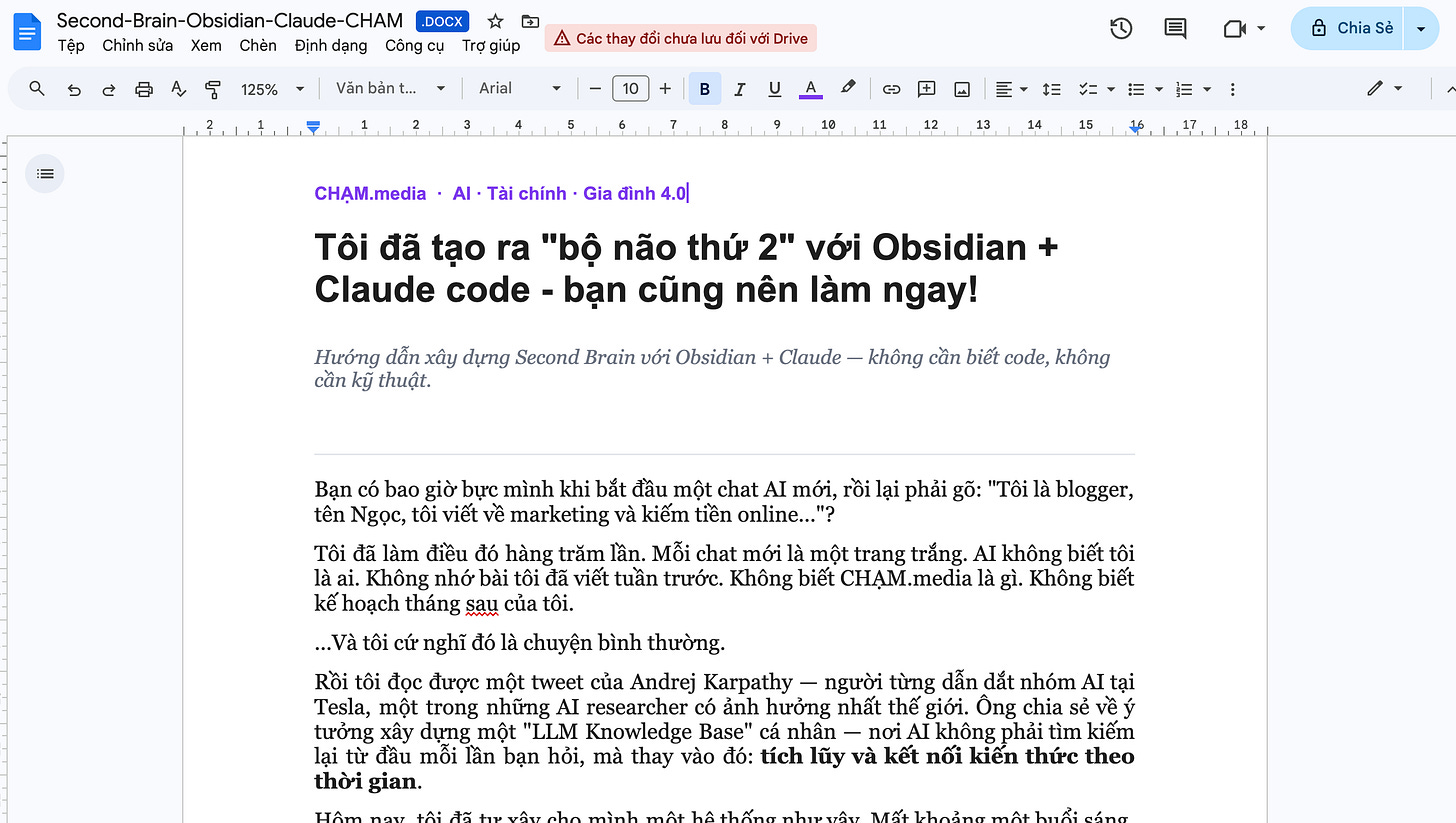Khi tôi quay lại thì bài viết đã xong và được lưu gọn gàng trên Google Drive: